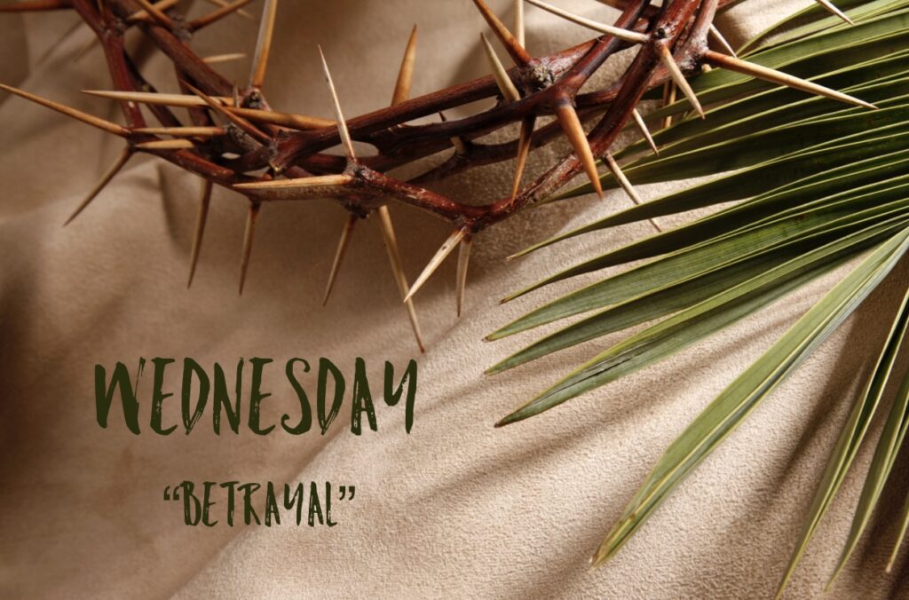 On Wednesday of Holy Week, Judas Iscariot slips away from the group of disciples and makes his way to the chief priests. There are many theories for the motivation for this action; greed, misplaced hope for deliverance, frustration with unfulfilled expectations, self-preservation. It may have been some combination of these, and Luke goes on to tell us that Satan entered into Judas and set him on this path.